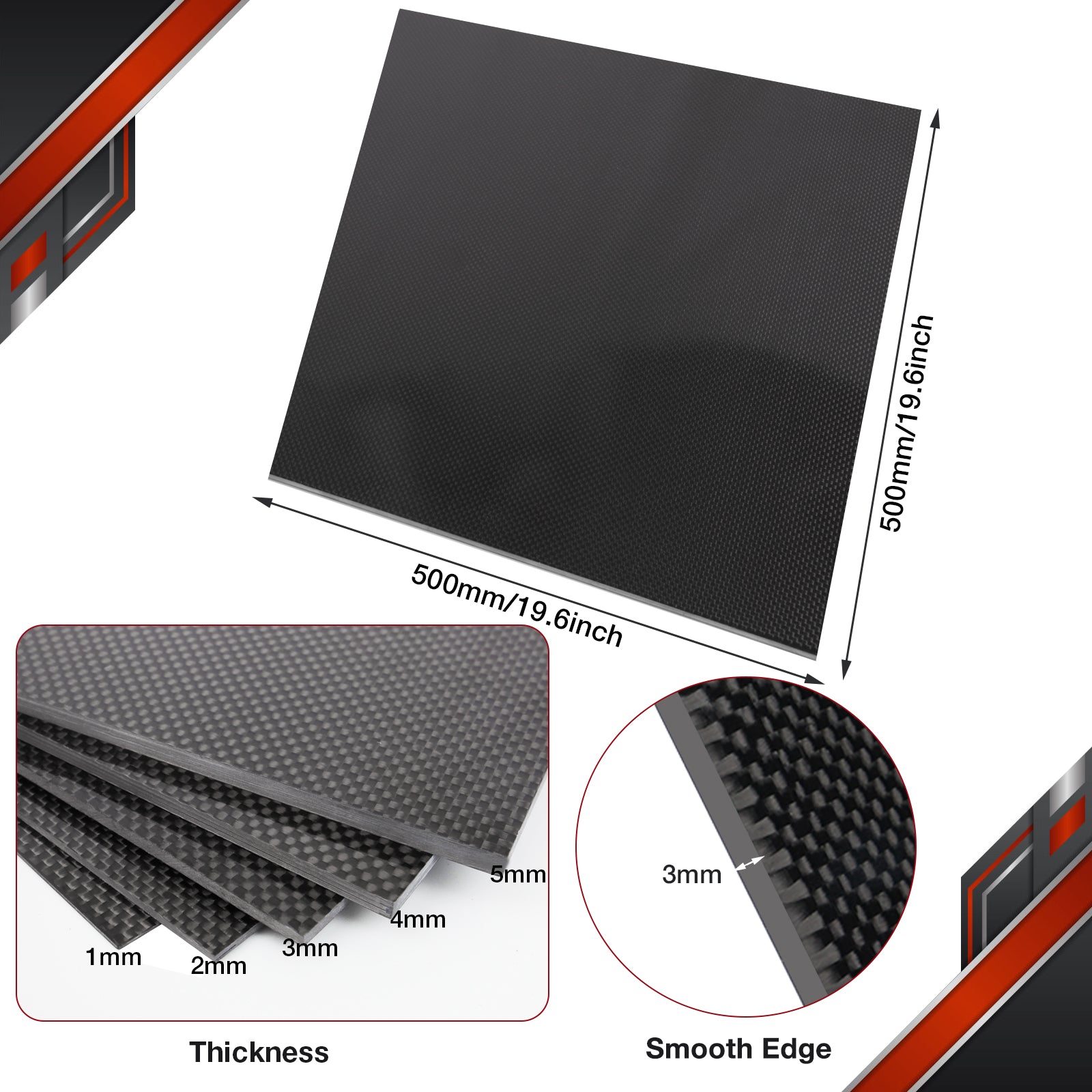 ARRIS 500x500mm 3kカーボンファイバープレート-ピュア炭素繊維(厚さ0.5-6mm) 1pcs